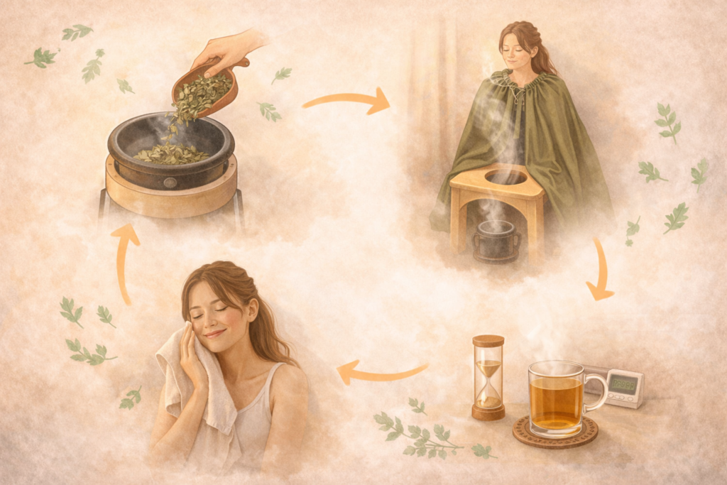 この記事では、よもぎ蒸しの基本的な流れをわかりやすくご紹介します。